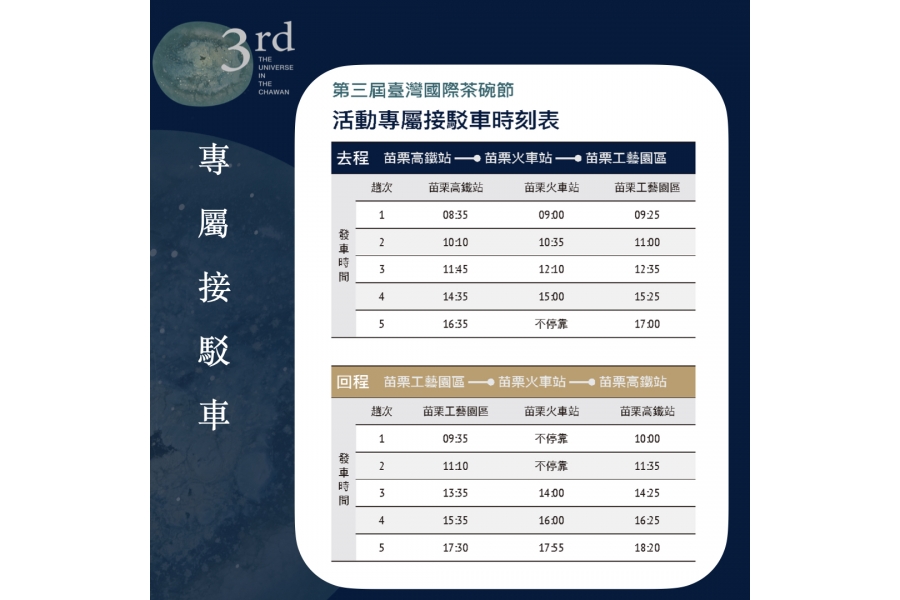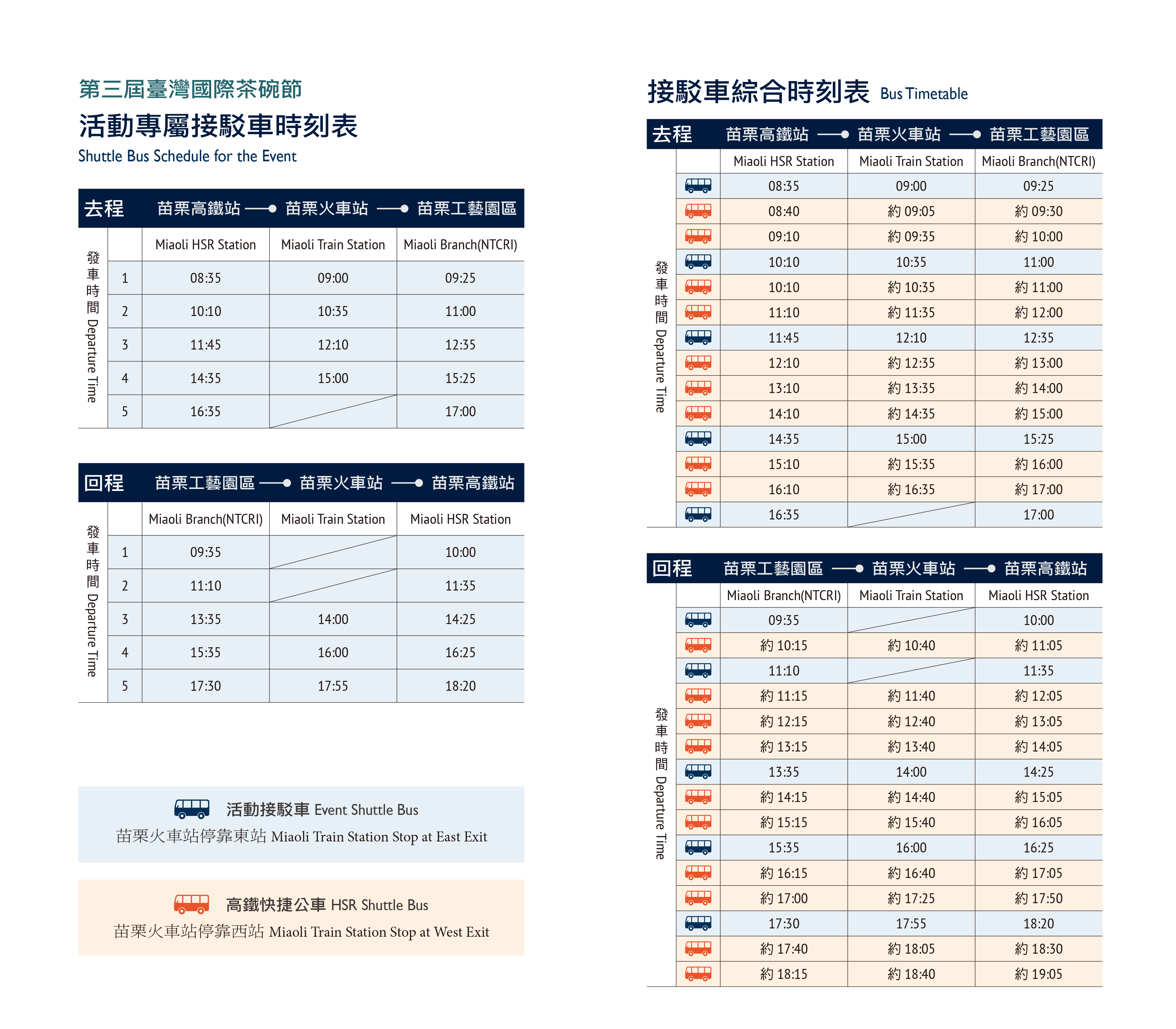 去程:苗栗高鐵 - 苗栗火車站 - 苗栗工藝園區(會場)